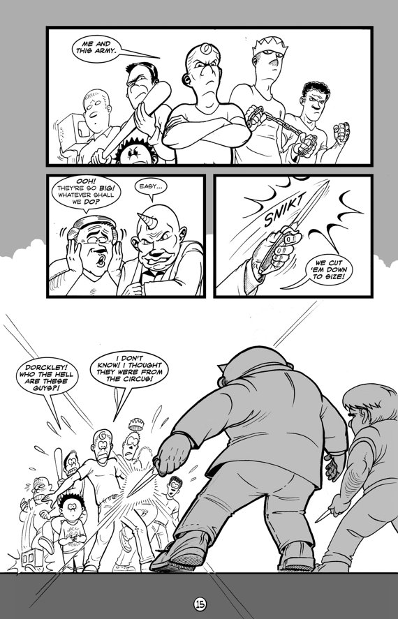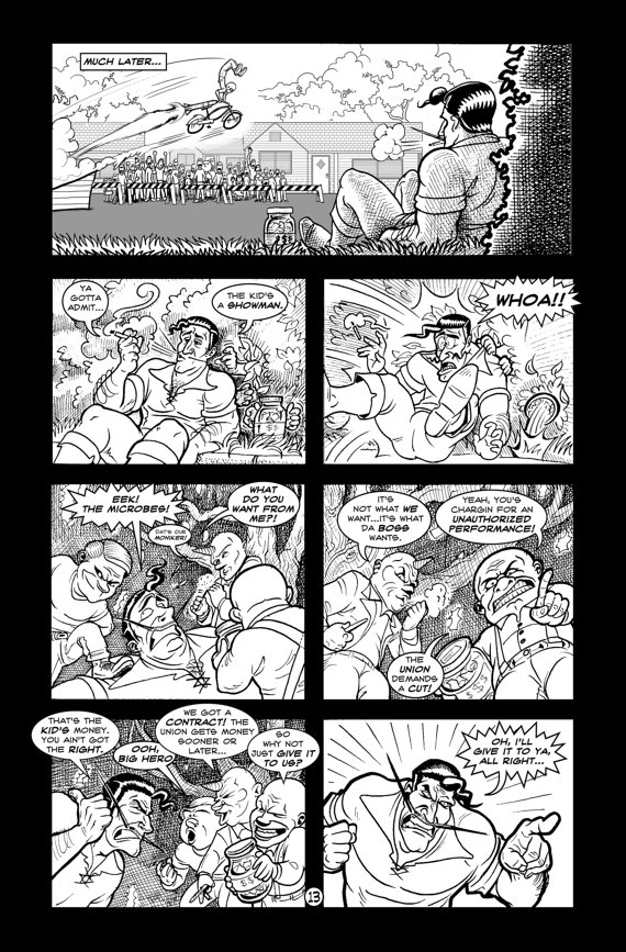 After a disastrous performance, Sidelong Sidely is given the worst punishment imaginable: marketing for Bob's Traveling Circus with Walter Dorckley! But now a set of sinister pipsqueaks called The Microbes are out to collect Union Dues...Slapstick comedy, sharp wit, and bizarre characters are all on display in this harebrained adventure from Blind Alley Comics.